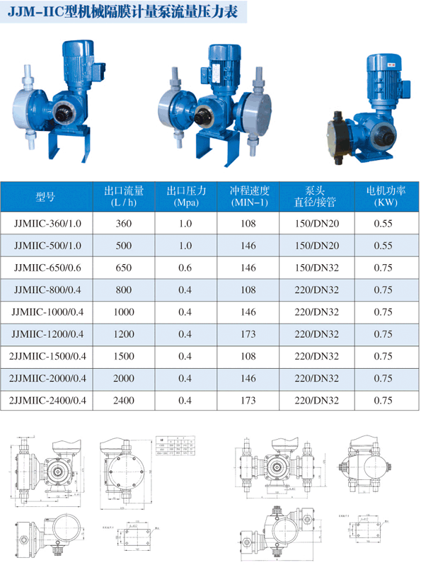 計量泵 >> JJM-ⅡC型計量泵 最大流量為2400L/H,最高耐壓1.0Mpa