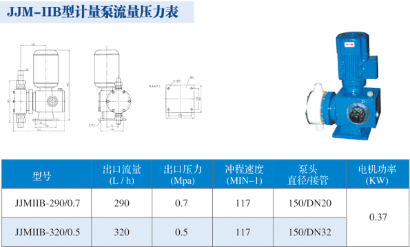 計量泵 >> JJM-ⅡB型計量泵 最大流量為320L/H,最高耐壓0.7Mpa