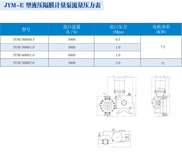 計(jì)量泵 >> JYM-E型液壓隔膜計(jì)量泵 最大流量為6000L/H,最高耐壓2.0Mpa